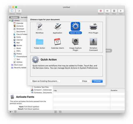 Note that Automator also has a “Run Shell Script” step and a “Run JavaScript” step that you could have used instead. But since this is Automator, I wanted to go full Sal Soghoian.